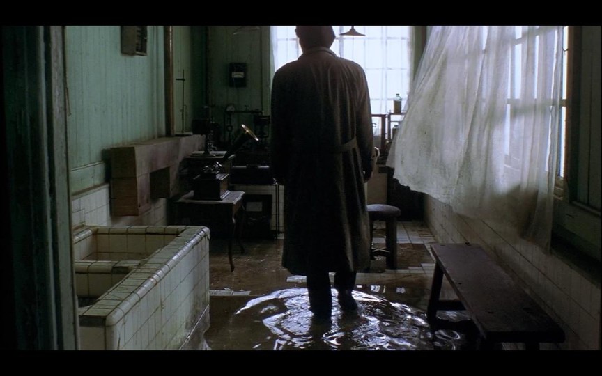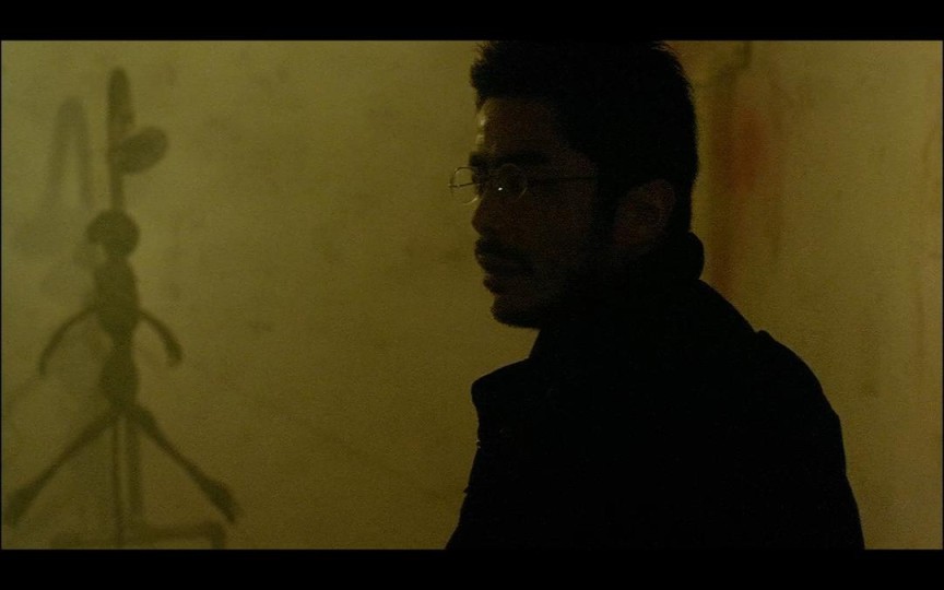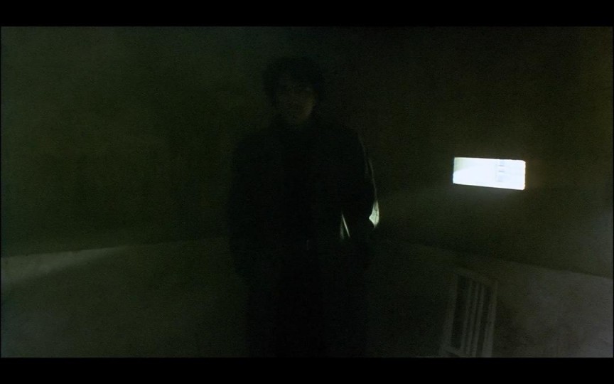 在同一场戏中,通过这些人物动作牵引出的场面调度中,镜头在不同的景别中切换。其中景深镜头与特写镜头最为重要。景深镜头用于表现人物与环境之间的关系,呈现身体性与空间的交互,单调昏暗的环境,人物机械式的动作,表现出了人物精神状态的迷茫。