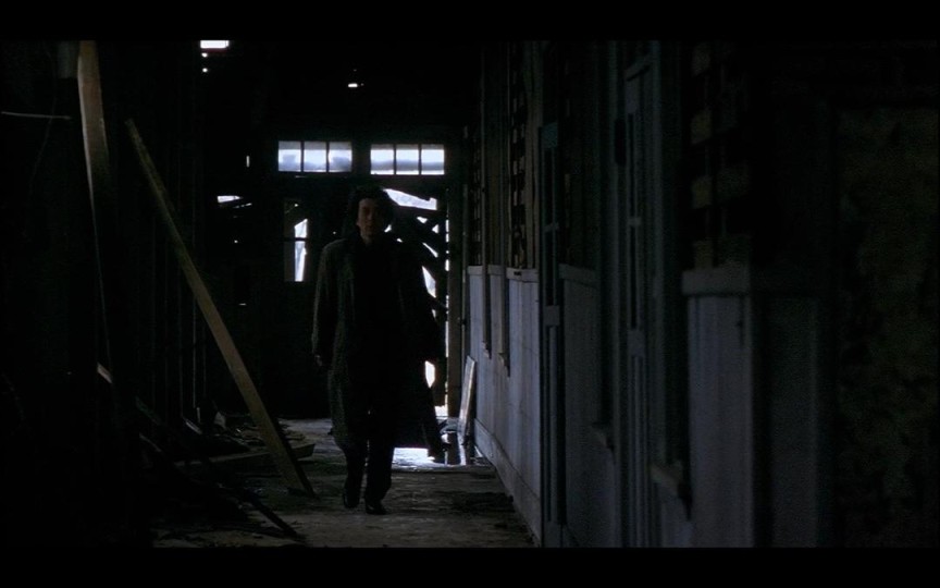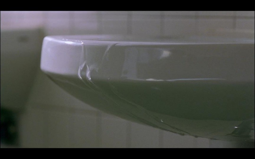 在人物的机械式动作不断改变镜头内空间关系的过程中,这些拍摄对象常常是流动的、变化的,如同人物的精神状态一样不稳定。当我们理解了身体与空间的互动逻辑后,突然出现了一个不包含空间关系的特写镜头,那么它一定是景深镜头的反义词——人物的精神状态已然崩塌。看到了特写镜头,我们立刻就会明白,这个人一定会去杀人了。