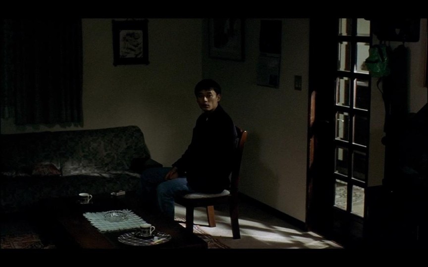 昏暗的房间,教师坐在阴影中,间宫走出画外。