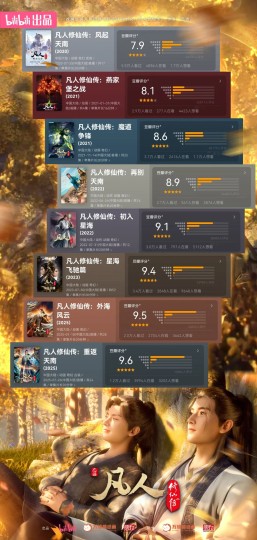 “凡人”动画今年五岁了,今年7月开播的《凡人修仙传:重返天南》取得了豆瓣9.6分的系列最高口碑;