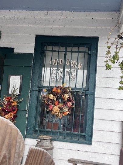 停好车我就立刻来了Whistle Stop Cafe排队取号。早上11点才开门的餐厅,我11点半抵达的时候就得等位1小时了,真是火热。门口就是这个非常有辨识度的标志。因为快秋天了,10月也是Halloween season,上面也有了一些秋日风格的装饰,好温馨。