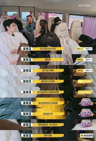 更出乎意料的是,张柏芝很会照顾人而且很享受这件事。在车上,张柏芝道出原因——她的爷爷奶奶都是聋哑人,所以她从小就习惯照顾他人,看到别人满意自己也会开心,而且“我一边听力不太好,因为我家人说话声音都很大”。