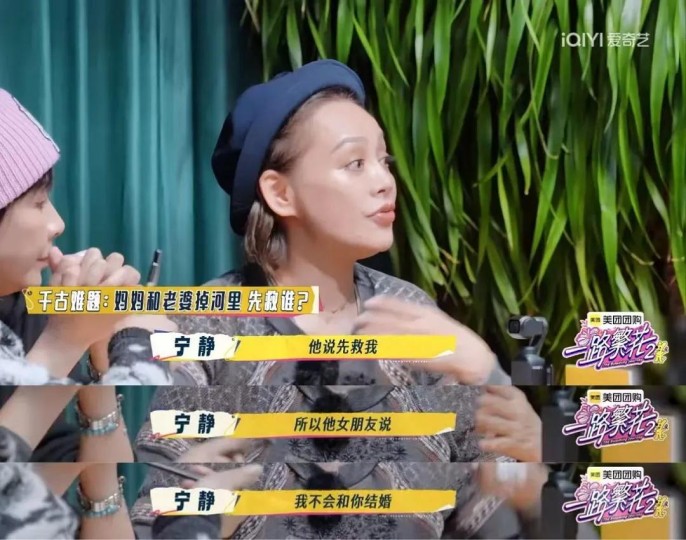 第一期的婆媳关系,刘晓庆就很直接地说,虽然自己没小孩,但外甥是她抚养长大的,所以看到外甥有了女朋友心里会有点失落和难过;宁静则讲了儿子曾因在经典送命题“妈和女朋友同时落水”中选择先救妈妈,而被女朋友分手。